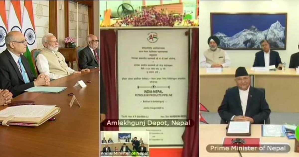 Inauguration of Motihari - Amlekhgunj petroleum pipeline by Prime Minister KP Sharma Oli of Nepal and Prime Minister Narendra Modi of India through Video Conference on September 10,2019 Tuesday.